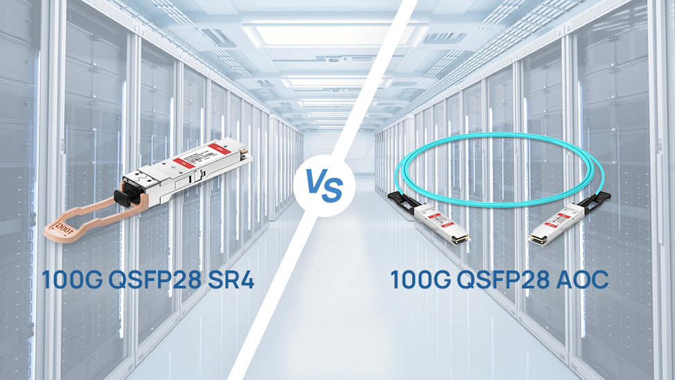 Compare 100G SR4 optical modules and 100G QSFP28 AOC cables for data center short-distance interconnects. Analyze bandwidth, latency, stability, cost, and deployment flexibility to choose the optimal solution.
