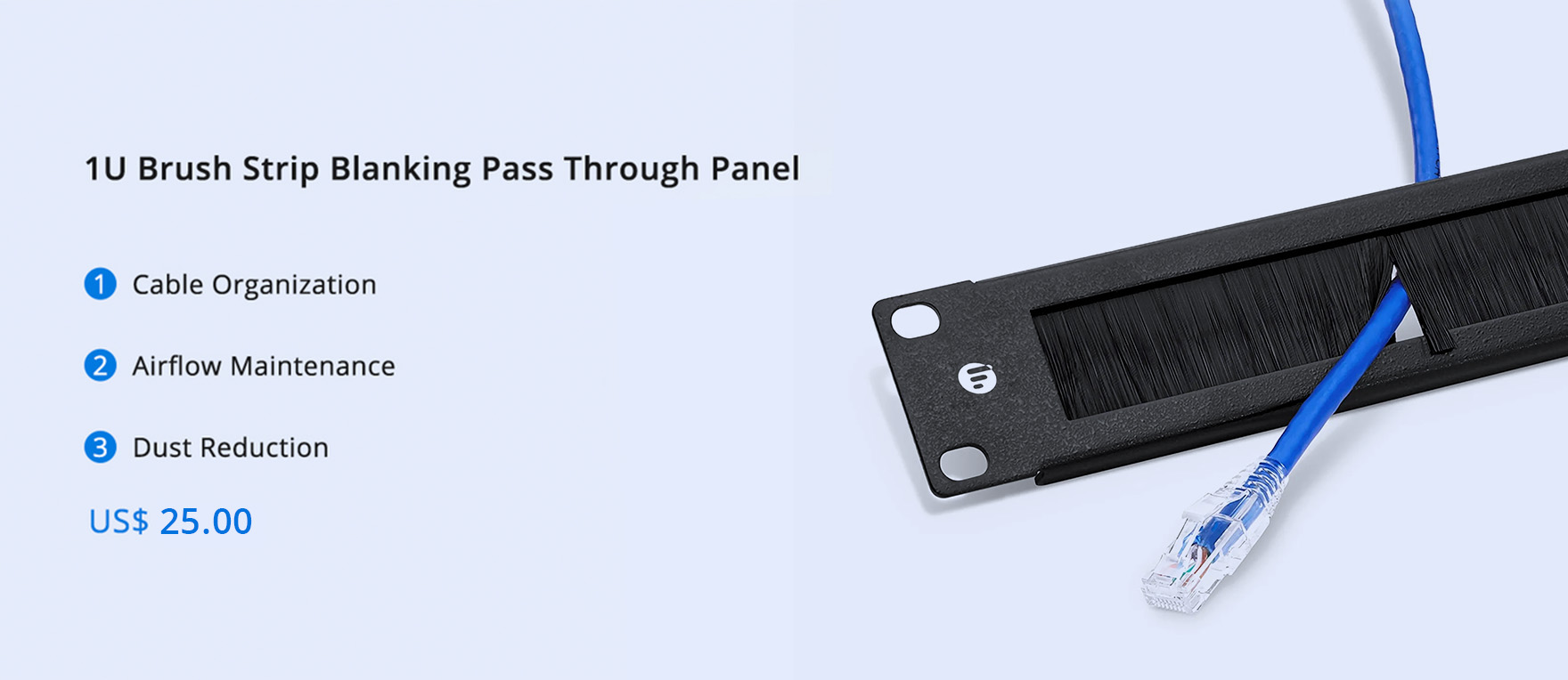 FS 1U brush panel features brush-like bristles that allow cables to pass through while keeping the opening sealed. Made from high-quality steel and high-density nylon bristles, this panel helps organize cables, maintain airflow, and reduce dust entry. Designed to block unwanted airflow inside rack enclosures and server cabinets, it improves cooling efficiency and separates cold and hot aisles. Mounted to a standard 19" rack, the 1U cable management panel with brush removes dust and dirt and offers cable separation for streamlined organization. So, this pass-through cable management panel is an ideal solution for routing cables from the front of the rack to the rear.