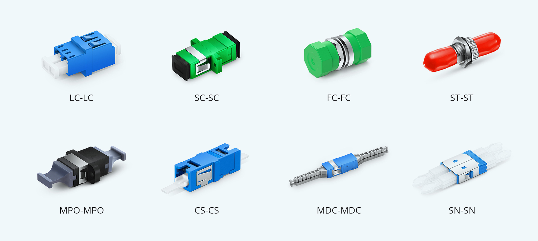 By Connector Type | Same-Type Adapter | Connects the same type of fiber connectors on both ends (e.g., LC-LC, SC-SC, FC-FC). | ![]() |