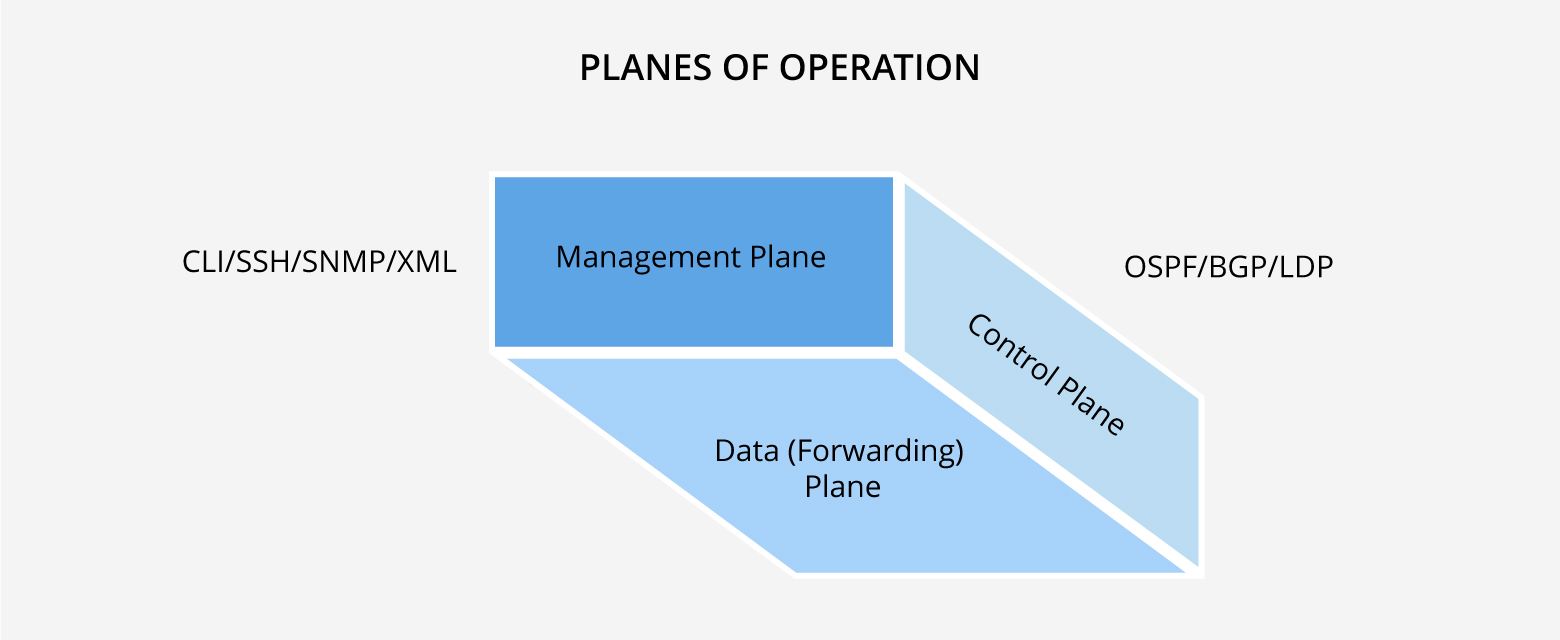 Management Plane: Focused on network configuration and monitoring, including functions such as device management, status reporting, and network analytics.