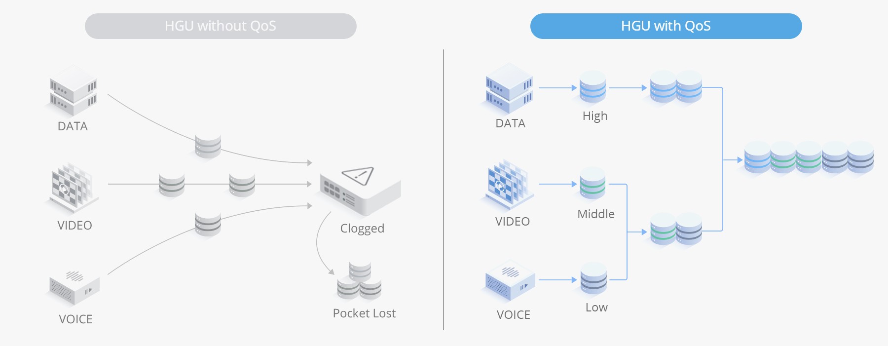 Low-latency traffic (VoIP, video conferencing, or gaming) can be assigned higher priority.
