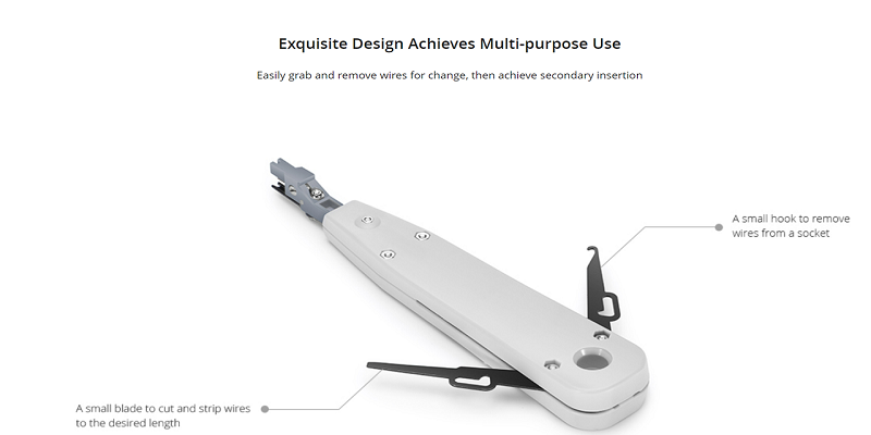 Punch down tool is a small hand tool used by telecommunication and network technicians. It is used for inserting the wire into insulation-displacement connectors on the punch down blocks, Cat5e patch panels, keystone modules, and surface mount boxes.