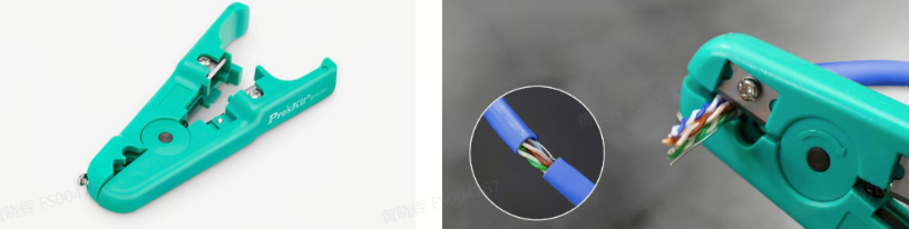 These tools are primarily used to remove the outer jacket of Ethernet cables and to cut cables to length. During operation, the tool is positioned around the cable jacket and rotated or pressed to score and strip the sheath cleanly, helping maintain conductor integrity before termination. As a dedicated copper cable stripping tool, it supports clean jacket removal prior to termination. FS provides the following basic wire stripping tools: the Pro'sKit® portable plastic coated wire stripper and the Pro'sKit® UTP/STP cable stripper.