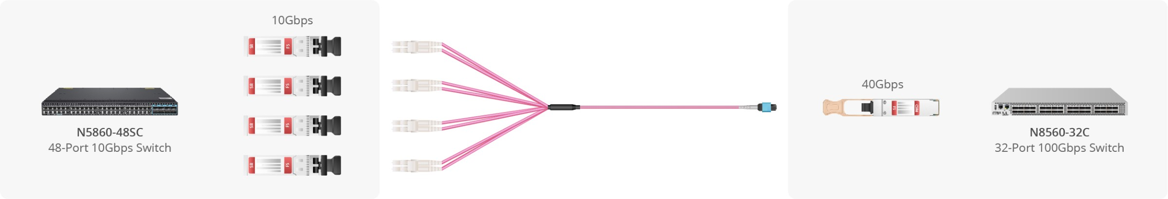 Flexible speeds: Supports 10G, 25G, 40G, and 100G to connect diverse devices.