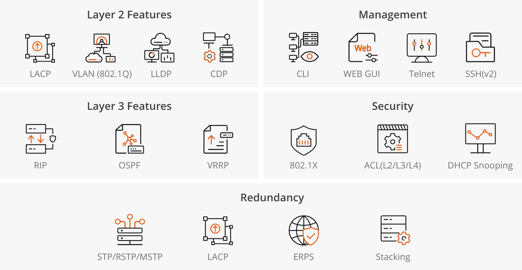 Unlike conventional Layer 2 switches, the IES5100-16TS goes beyond basic Ethernet switching to deliver advanced Layer 3 and management capabilities. It supports essential routing protocols such as OSPF, Static Routing, and ERPS, enabling more flexible, resilient, and scalable industrial network architectures.