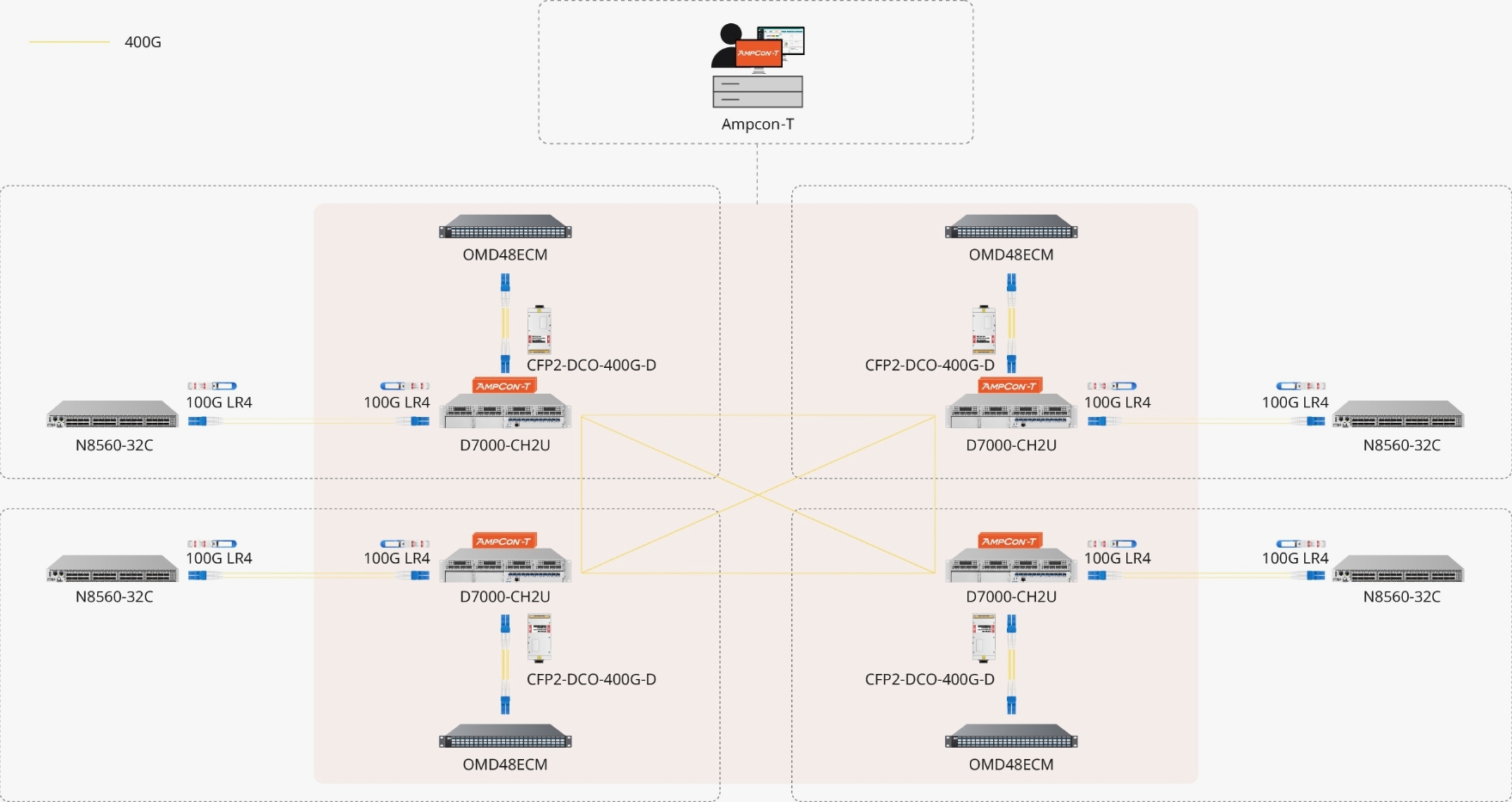 At the core of the solution, the FS D7000 Series equipped with the ROADM-09T module enables software-defined, dynamic wavelength provisioning—eliminating the need for extensive network redesigns or physical reconfigurations.