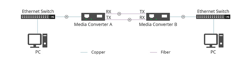 1. Fault Detection: If the RX signal on Media Converter A is lost, the TX end generates a Far End Fault signal, informing Media Converter B that a failure has occurred.