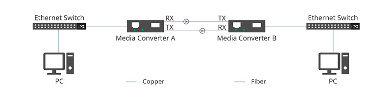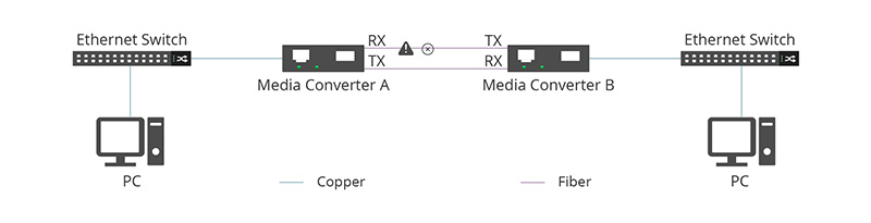 5. Auto Recovery: Once the RX signal on Media Converter A is restored, the TX transmission resumes automatically, re-establishing the link.