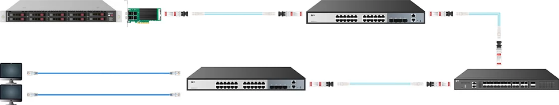 The S3900-24T4S 24-port Ethernet L2+ fully managed stackable switch has 24x Gigabit RJ45, with 4x 10Gb SFP+ Uplinks. This switch adopts the most cutting-edge Broadcom chip, can provide 128 Gbps switching capacity and 95 Mpps forwarding rate. With 1 and 10 Gb connections and advanced QoS to the edge of the network, while maintaining simple management. The S3900 series is an ideal Gigabit access and aggregation switch, designed for small and medium-sized enterprises, enterprises, mid-market and branch networks, which can reduce the total cost of ownership.