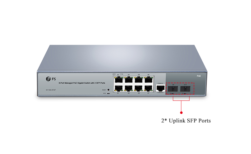 Ein Uplink-Port ist ein Port, an dem Übertragung und Empfang vertauscht sind und der für die Verbindung innerhalb eines Switches mit einem standardmäßigen Straight-Through-Kabel anstelle eines Crossover-Kabels ausgelegt ist. Auf diese Weise kann der Uplink-Port mit einem regulären Port eines anderen Geräts verbunden werden. Das Anschließen des Uplink-Ports eines Switches an den Standard-Port eines anderen Switches kann kann die Größe eines Netzwerks erweitern. Die meisten Enterprise-Switches auf dem Markt haben 24 RJ45-Ports mit 2 dedizierten SFP-Ports für Uplinks oder 48 Kupfer-Ports mit entweder 2 oder 4 dedizierten SFP-Uplink-Ports. Jeder SFP-Uplink-Port hat zwei Lämpchen, die die Aktivität und den Status dieses Ports anzeigen. FS.com Deutschland stellt diese SFP-Uplink-Ports auch bei Gigabit-PoE-Switches mit 8 und 24 Ports für eine Datenrate von 1 Gigabit pro Sekunde zur Verfügung.