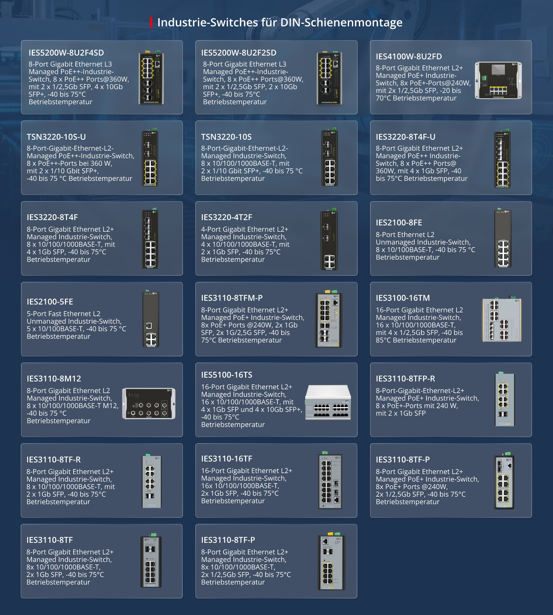 Im Zuge der Vertiefung der deutschen Industrie 4.0-Strategie steigen in Sektoren wie Präzisionsfertigung, Automobiltechnik, Energietechnik und Schienenverkehr die Anforderungen an Stabilität, Echtzeit-Leistung und Interoperabilität in der Industriekommunikation. Industrie-Ethernet-Switches, für raue Umgebungen konstruiert, für die gängigen lokalen Protokolle optimiert und mit dem deutschen Industrie-Ökosystem eng abgestimmt, wurden als Kern deutscher Industrienetzwerke ein essentieller Teil der Infrastruktur zur Verbindung intelligenter Geräte und Gewährleistung präziser Datenübertragung.