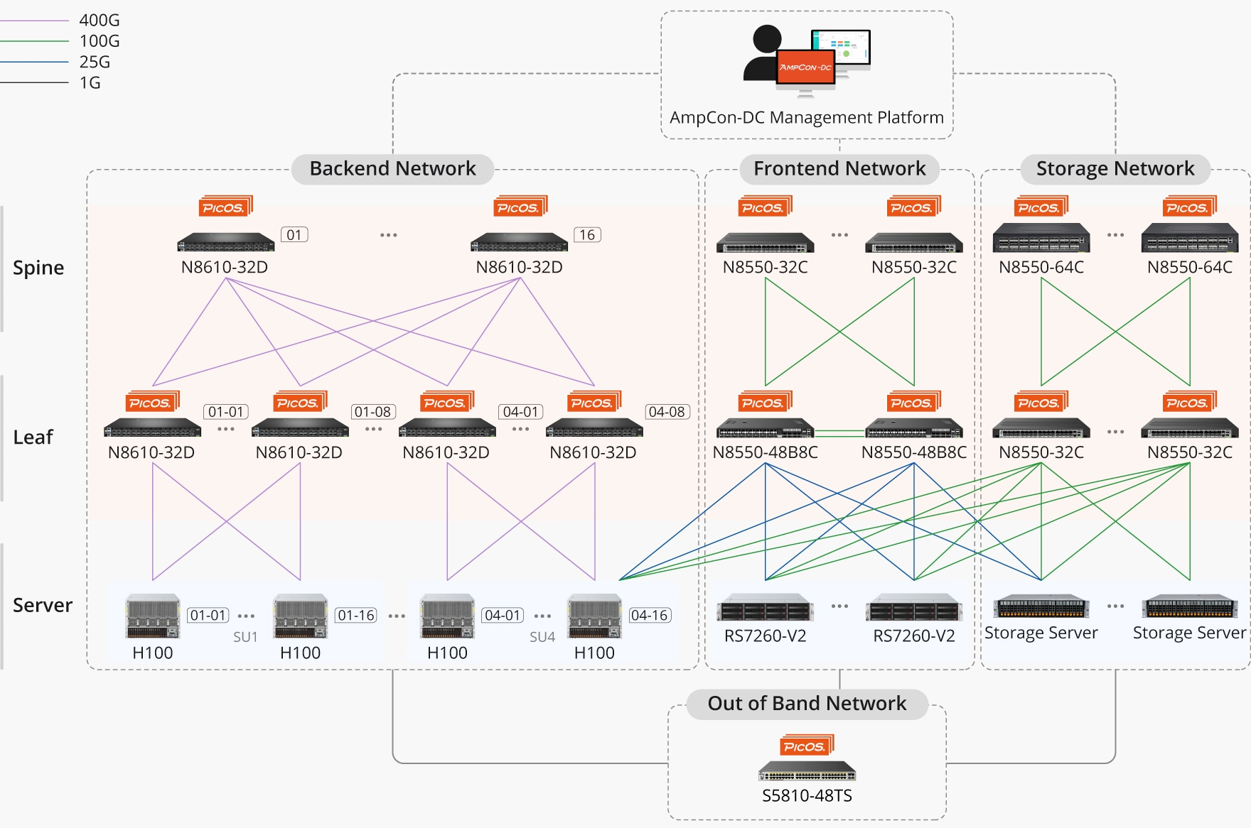 Based on the PicOS® network operating system and AmpCon centralized management platform, the solution enables automated configuration, intelligent operations and maintenance, and real-time monitoring. Users can maintain complex network environments with lower labor costs, improving operational efficiency and stability.