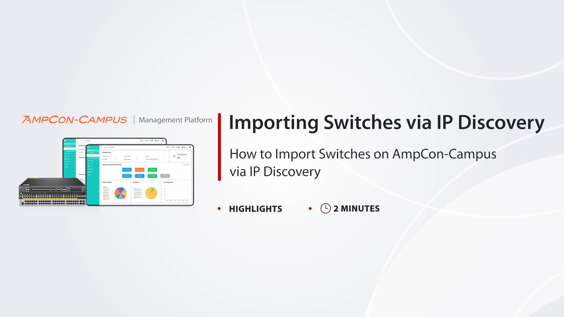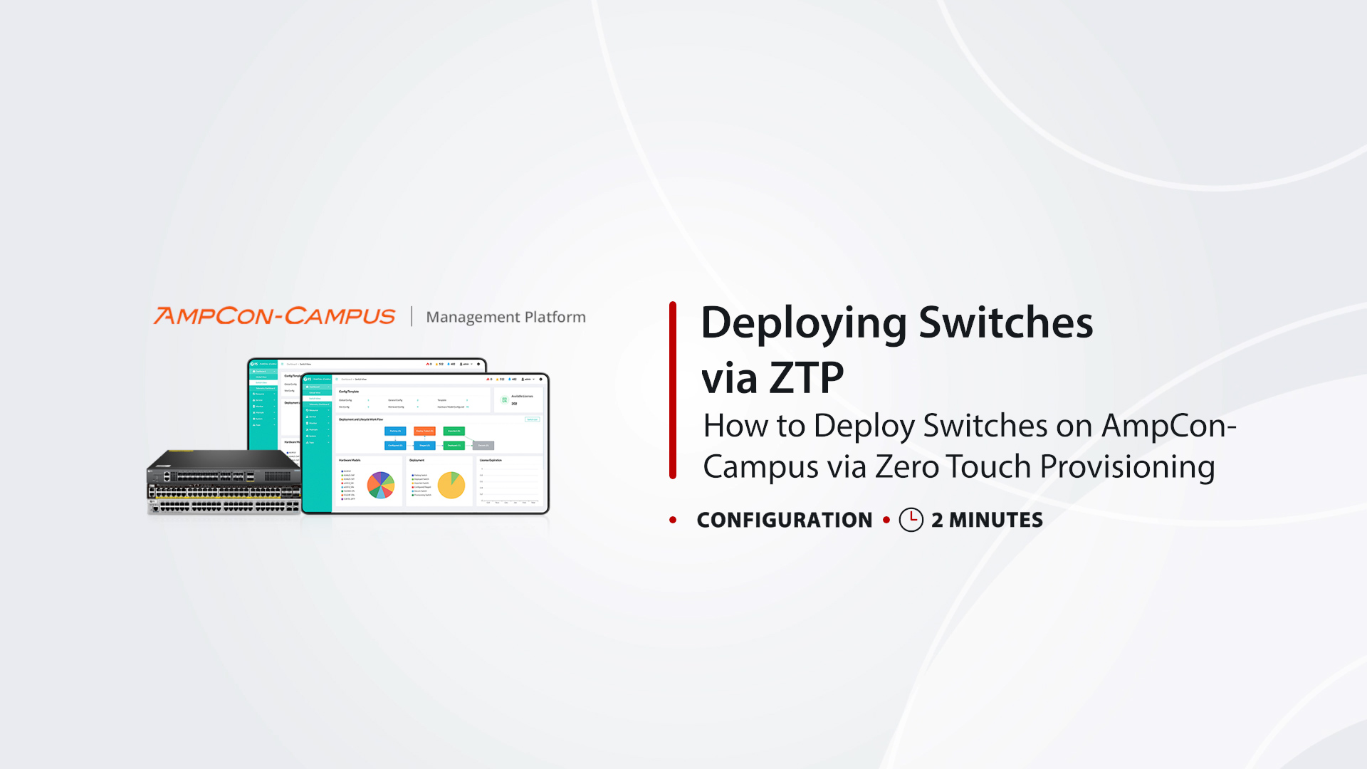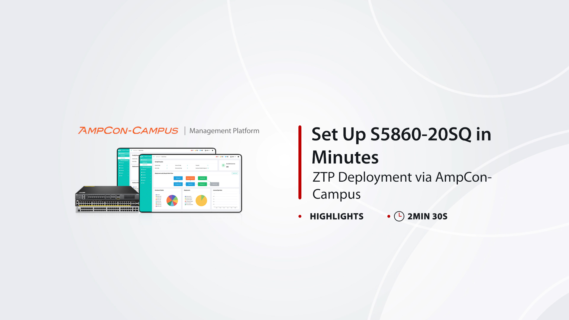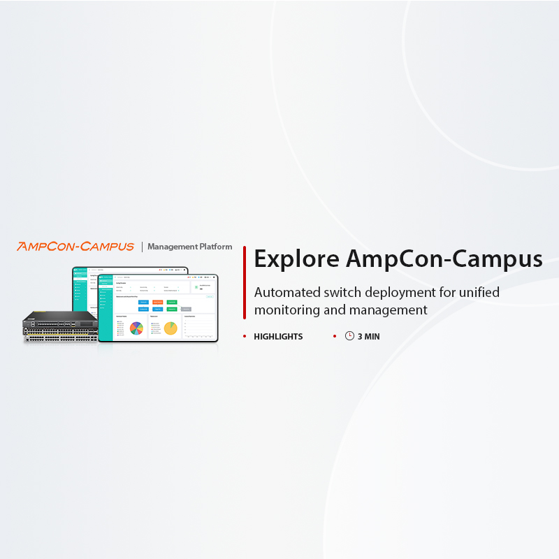 スイッチはAmpCon-Campus管理プラットフォームで管理され、Day 0からDay 2+までの自動ライフサイクル管理(ZTP)、トポロジー自動検出、リアルタイムテレメトリを提供します。AmpCon-Campusはワークフローを自動化し、運用を簡素化、接続デバイスのパフォーマンス可視化を強化します。