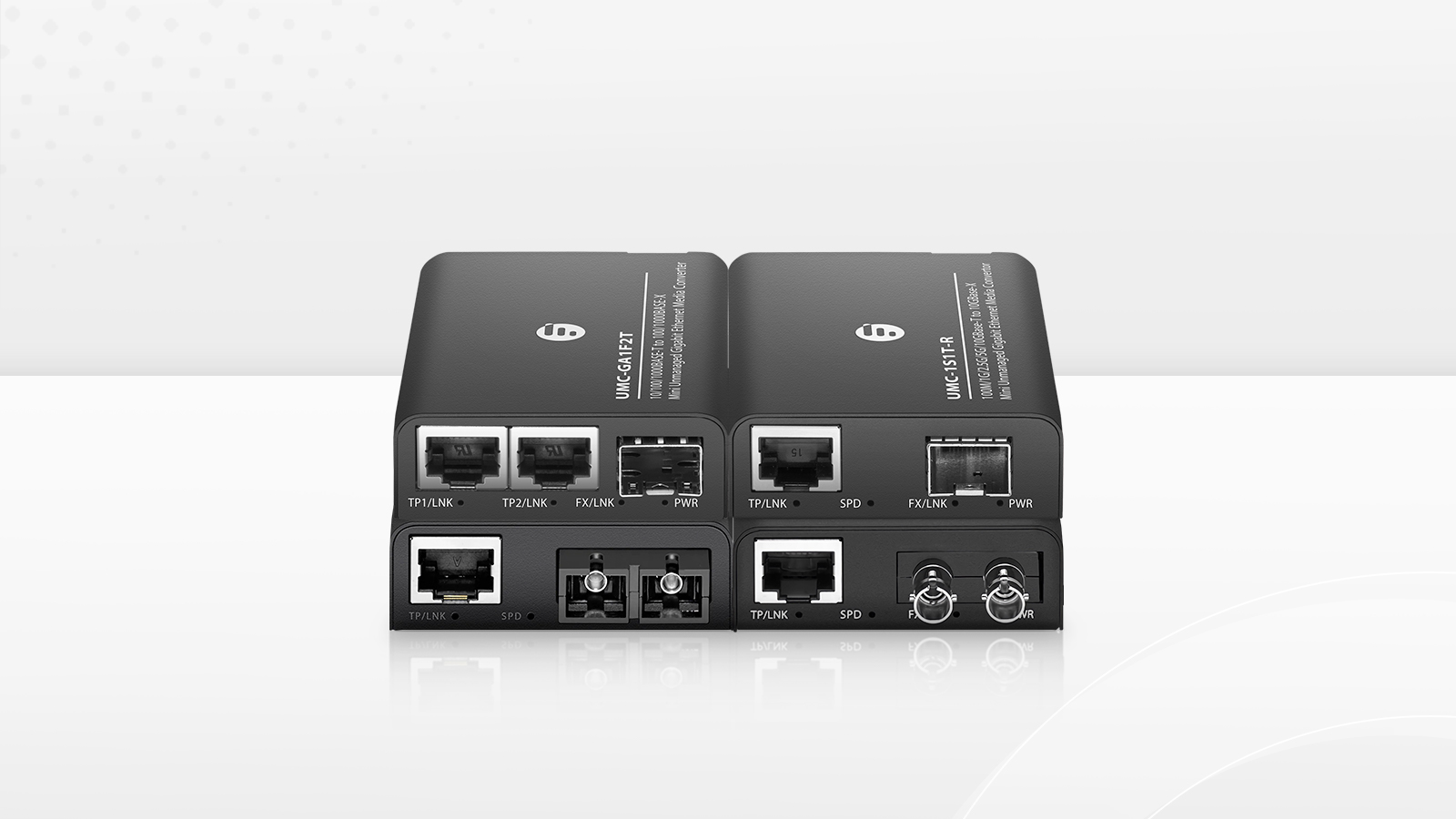 UMC-GA1F1Tミニギガビット・イーサネット・メディア・コンバータは、1000BASE-SX/LXファイバーと10/100/1000Base-T銅線ネットワークをブリッジし、SFPモジュールを介して最大2KM(マルチモード)または160KM(シングルモード/WDM)までファイバーを延長できます。リンク・フォールト・パススルー(LFP)技術の統合により、効率的なネットワーク・メンテナンスを促進し、ダウンタイムを削減します。UMC-GA1F1Tは、机上、壁面、シャーシ設置のオプションがあり、ISPネットワークや小規模オフィス環境向けの汎用的なソリューションです。