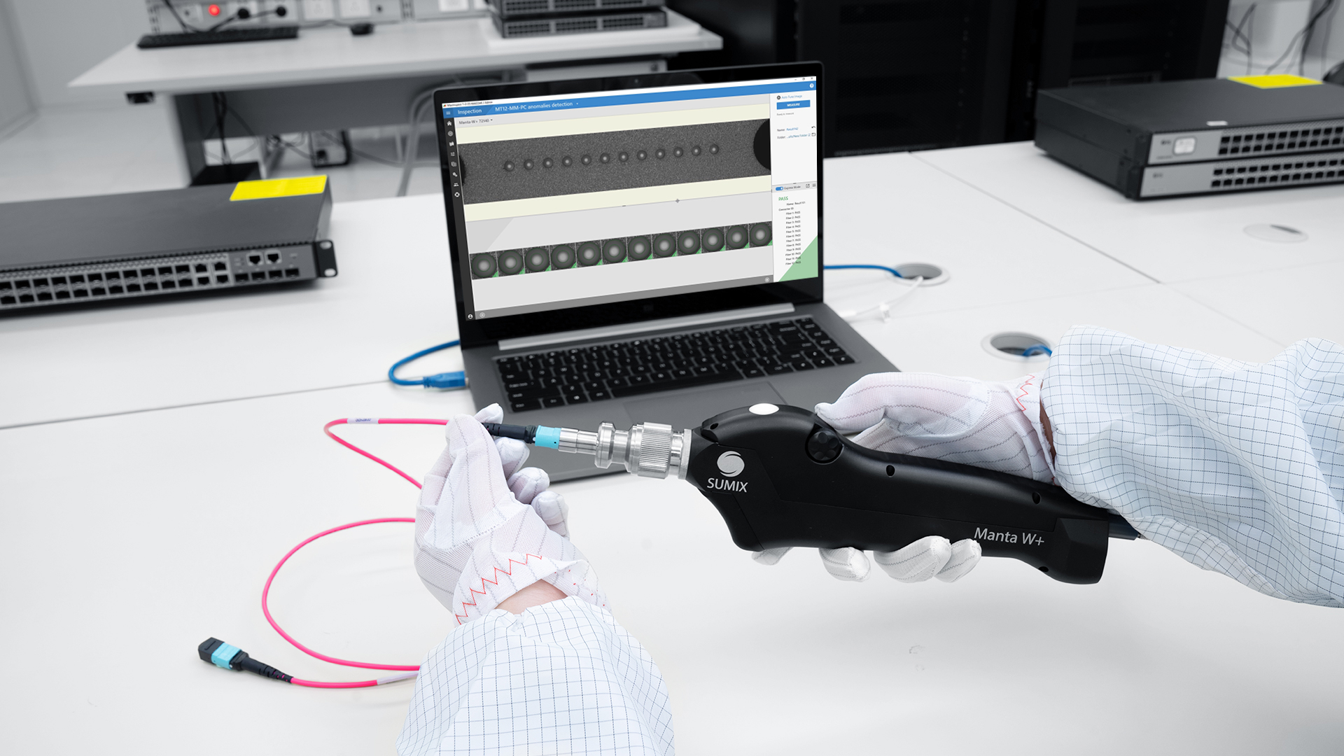 Cleaning MTP®/MPO-16 connectors with IBC™ MTP®-16™ Cleaner.
