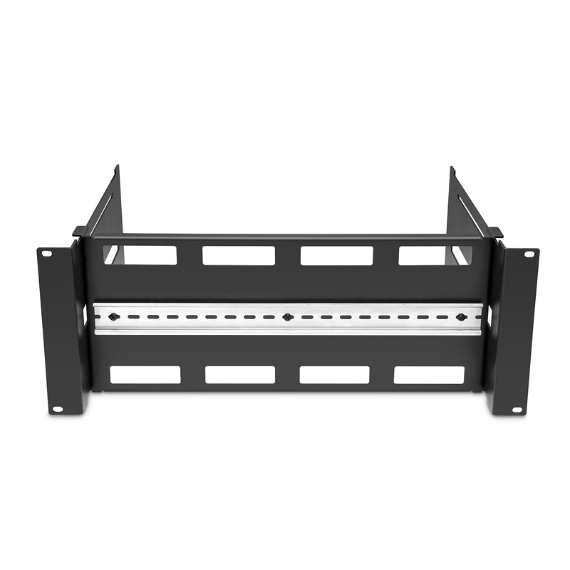 This 2U rack-mount DIN kit includes screws and nuts, making it compliant with an array of DIN rail equipment, such as power supplies, programmable time switches and circuit breakers. The adjustable rails can be easily set back to match DIN rail equipment of any depth.