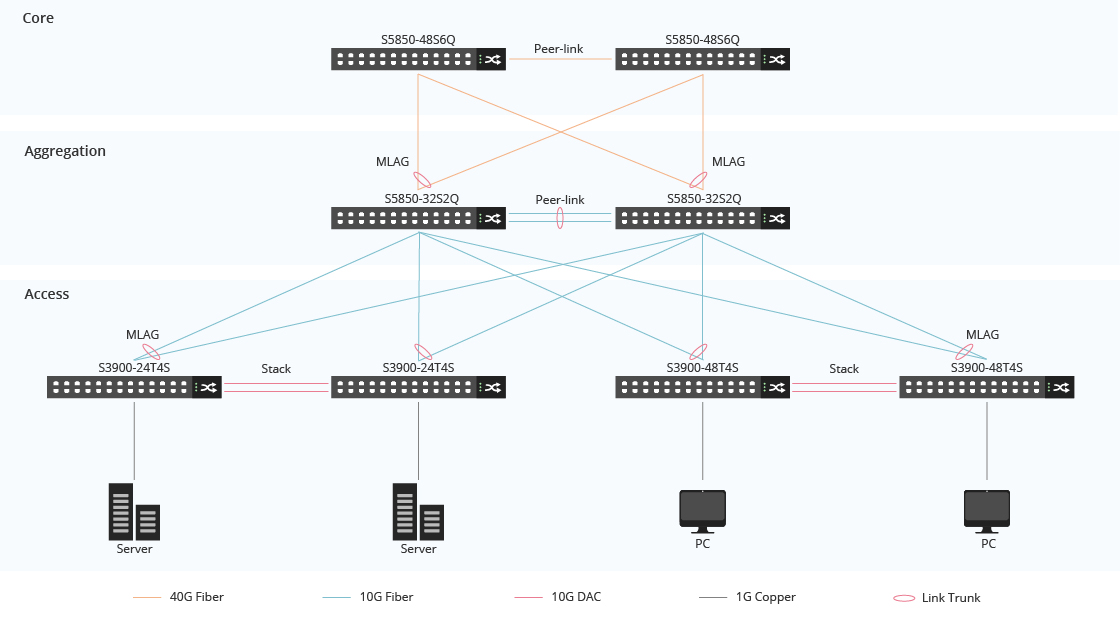 The S5850-48S6Q Switch Improves the High Redundancy through MLAG to Achieve High Availability in the Enterprise Network