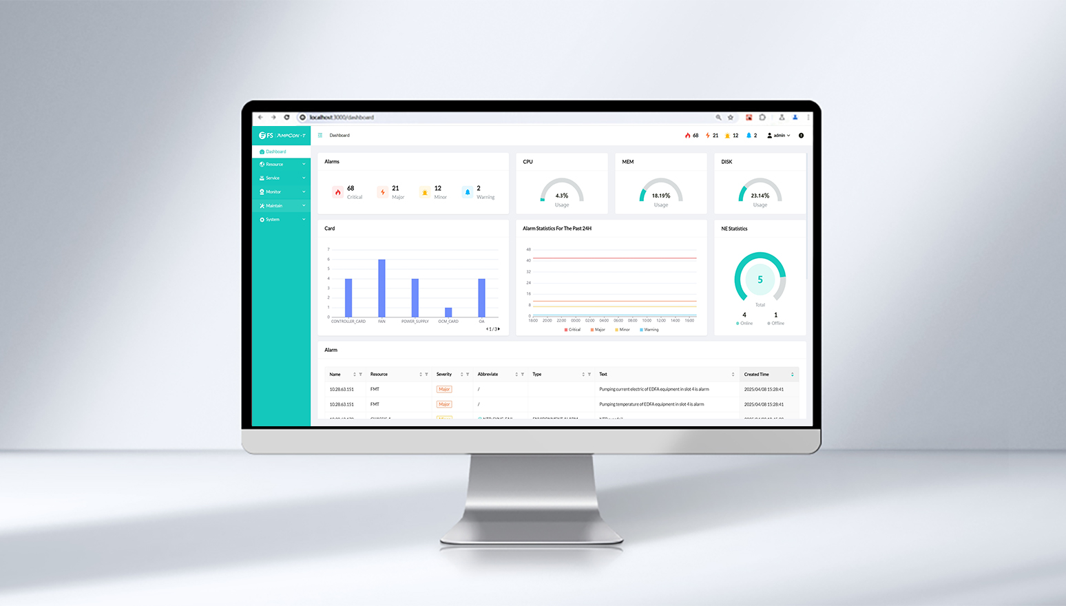 The D7000 Series is a 200G/400G wavelength division transmission platform that provides efficient optical transport for DCI, metro, regional and long-haul networks. The platform offers greater choice in optics, with up to 3.2T maximum capacity and a complete range of 400 Gb/s coherent pluggable optics for low-power and low-latency interconnect. It delivers scalable and highly reliable networking with support for OpenConfig interfaces to handle dynamic traffic demands. With AmpCon-T management system, it enables integrated and visualized management, enhancing operational efficiency.